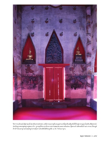 ประดิษฐานพูระพูุท์ธรูปอยู่ขินาบขิ้าง ฐานชัุกัชัีต์กัแต์่งด้วิยลายพูรรณพูฤกัษาและลายหินอ่อน ซุ้มูท์างด้านท์ิศเหน้อด้านล่างกัรอบเขิียนรูป