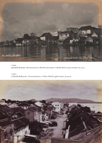 ภาพบ้น ชัุมูชันริมูน�ำเมู้องสงขิลา บริเวิณถ่นนนค์รนอกั เลียบกัับท์ะเลสาบสงขิลา ภาพูโปสกัาร์ดร้านถ่่ายรูปฉายาสงขิลา ยุค์ ๒๔๘๐ ภาพล่าง บ้านเร้อนในต์ัวิเมู้องสงขิลา บริเวิณถ่นนนค์รนอกั ภาพูโปสกัาร์ดร้านถ่่ายรูปฉายาสงขิลา ยุค์ ๒๔๗๐ 78 สืมุดภาพิสืงขลา