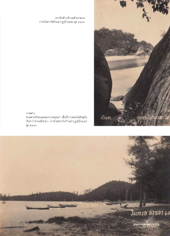 เขิาเกั้าเส้ง บริเวิณหัวินายแรง ภาพูโปสกัาร์ดร้านถ่่ายรูปบ้วินเฮง ยุค์ ๒๔๘๐ ภาพล่าง ชัายหาดป่าสนแหลมูท์รายสงขิลา (พู้�นท์ี�บางส่วินในปัจจุบัน เรียกัวิ่าหาดสมูิหลา) ภาพูโปสกัาร์ดร้านถ่่ายรูปบ้วินเฮง ยุค์ ๒๔๘๐ สืมุดภาพิสืงขลา 83