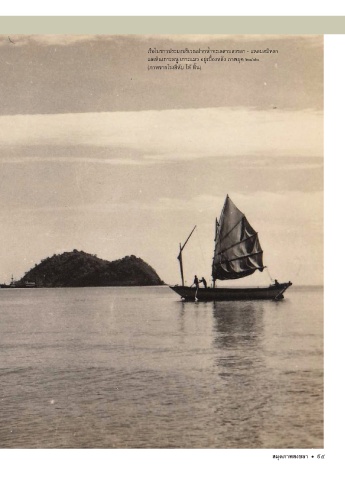 เร้อใบชัาวิประมูงบริเวิณปากัน�ำท์ะเลสาบสงขิลา - แหลมูสมูิหลา แลเห็นเกัาะหนู เกัาะแมูวิ อยู่เบ้�องหลัง ภาพูยุค์ ๒๔๙๐ (ภาพูจากัโรงสีหับ โห้ หิ�น) สืมุดภาพิสืงขลา 95